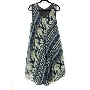 Ana & Rose Sleeveless A-Line Dress Womens One Size Blue Multicolor Print