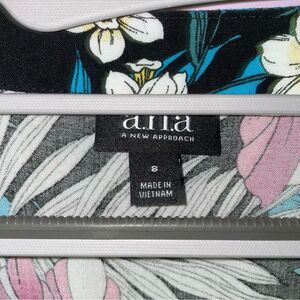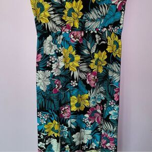 Ana Size 8 Midi Dress Black w Colorful Tropical Floral Print Ruffle Casual