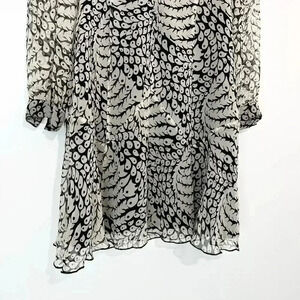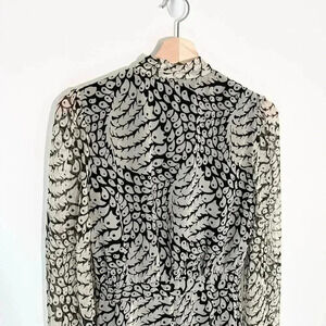 Ana Sui x Anthropologie Silk Long Sleeve Bow Dress Sheer | Cream Black | SZ 4