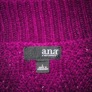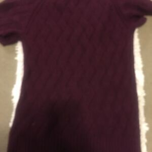Ana sweater dress in size large. The dress is made of acrylic knit fabric in a purple color. It features a heart detail.