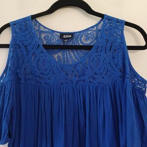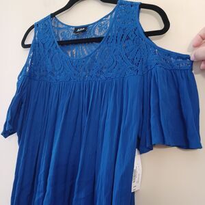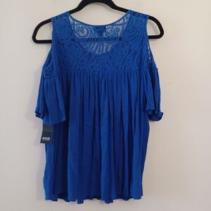 Ana Top NWT LG Shoulder Lace Detail Royal Blue Light Flowy Vacation Casual
