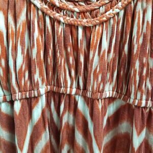 Like New, A.N.A. rust red and orange colored maxi dress with braided straps and raw trimmed neckline, size small