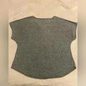 Ana V neck short sleeve in gray with black & white mingled in with sequins. Would make a cute outfit with shorts or capris & sandals. Women’s size medium. 85% poly 15% flax. Pit to pit 22” length 24”. SFPF HOME