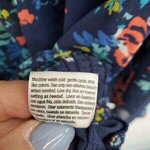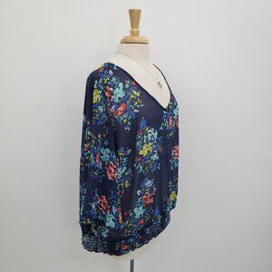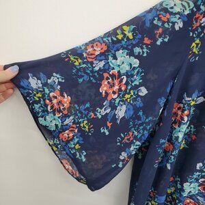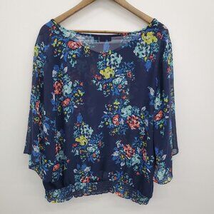 A.n.a Womens Floral Print Sheer Blouse Top Plus Size 2X Blue 3/4 Sleeve V-Neck