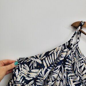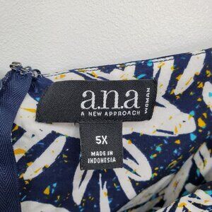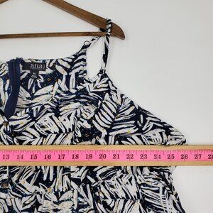 A.n.a Womens Navy Blue Babydoll Tank Top Size 5X Sleeveless Palm Leaf Zip Back