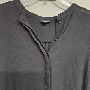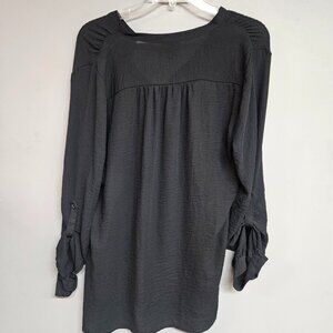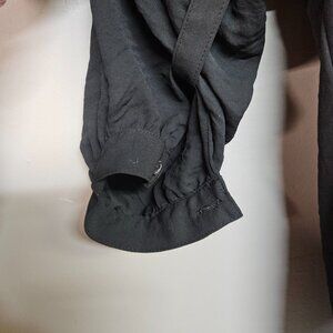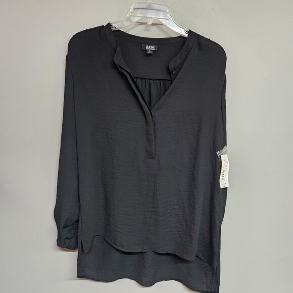 Ana Women's medium black 3/4 long sleeve button closure V-neck sheer blouse
