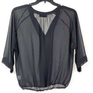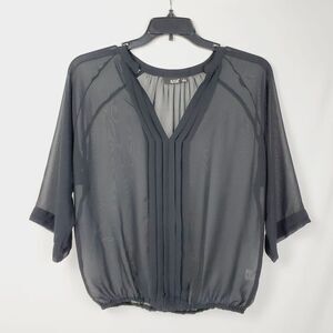 A.n.a. Womens SMALL Black SS Sheer Blouse Tunic Top