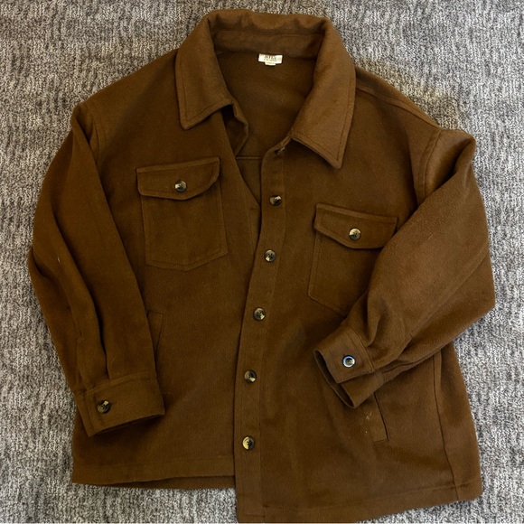 Classic brown shirt jacket by a.n.a. Features button-front closure and dual chest pockets. Ideal for layering.