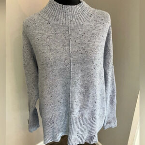 Ana heather grey sweater with seam detail down middle. Mock turtleneck.