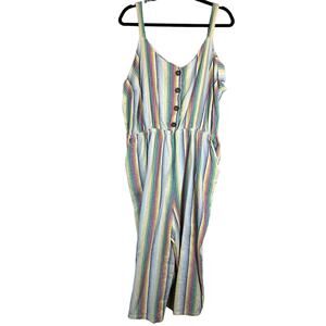 Ana linen blend striped multicolor sleeveless jumpsuit