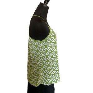 Cute sheer summer top in vivid green and white diamond pattern by a new approach. Great summer piece for casual wear or cruise/vacation. Very good preowned condition. See through. Women's size medium petite.