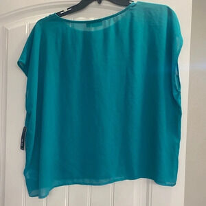 Ana sheer green blue color blouse with gold bead embellishment size 1x plus