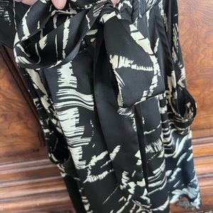 This tip looks great with dress pants. The top wraps around the neck and it tied in the back for an elevated, elegant look.