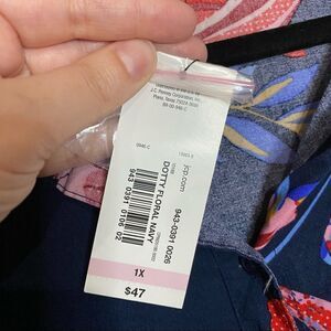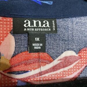 A.n.a Blue Floral Peplum Tunic Top. Size 1X with measurements in the pictures. NWT.