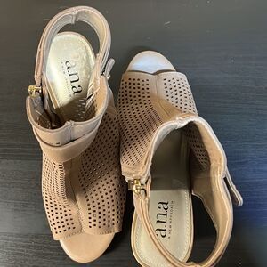 Size 6 in a taupe/caramel color
