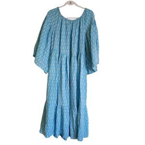 Anaak Amina Bell Dress Small Blue Floral Print Long Maxi Tent Boho Summer Size 1