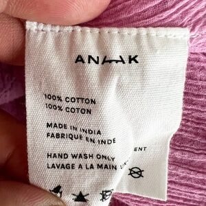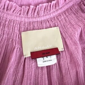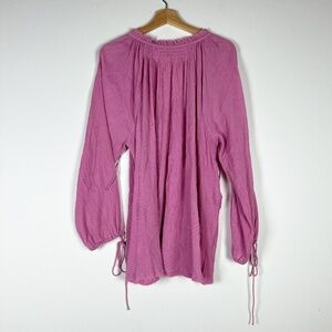 Anaak Cotton Gauze Textured Ruffle Pleated V Neck Long Sleeve Blouse Purple L