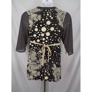 Anac Designed by Kimi Dot V-Neck Top Size Large Mesh Tie Waist Flare Sleeve Y2K