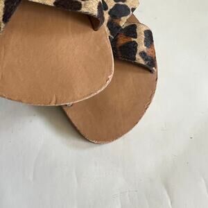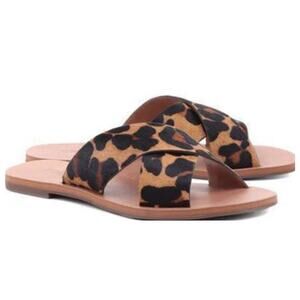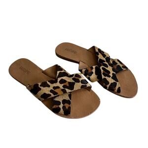 Anacapri Women's Animal Print Cross Strap Flat Slide Sandals 37 Brown Slip On k