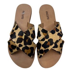 Anacapri Women's Animal Print Cross Strap Flat Sandal Brown & Black Size 6.5