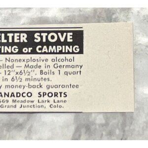 Anadco Sports Mini Print Ad Vintage 1962 Fallout Shelter Stove Camping Boating