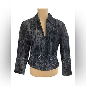 Anage Beaded Embroidered Full Zip Vintage Blazer leopard print Lining XS NWT