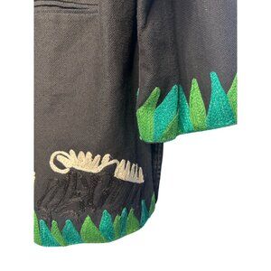 Anage Black Jungle Animal Embroidered Jacket L 100% Cotton