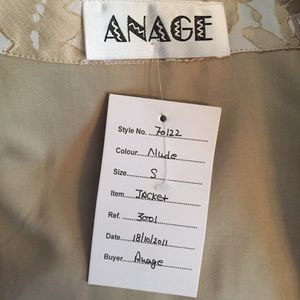 Anage Jacket sample. Classy design. Lace detail with sequins. Two pockets in front. Size small. New with sample tag still attached.