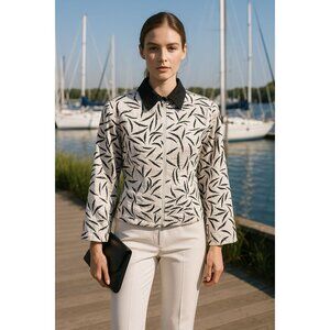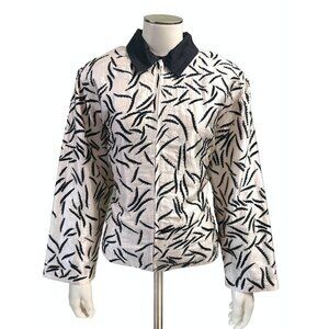 Anage Medium Black White Vintage Silk Jacket Embroidered City Chic Luxury