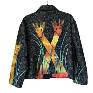 Stand out with this vibrant women's jacket featuring a unique giraffe print. Perfect for adding a splash of color to your wardrobe.