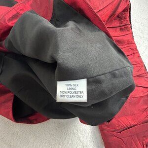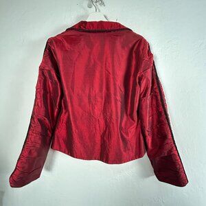Anage Too Womens Red Silk Embroidered Blazer Jacket Medium Lined Two-Button