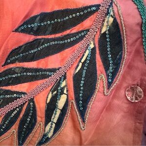Anage Womens 100% Silk Embroidered Flowers Patchwork Jacket M palm tree pink