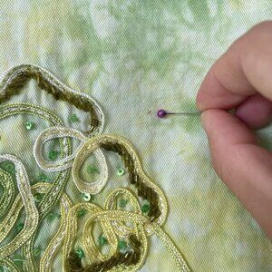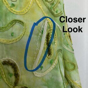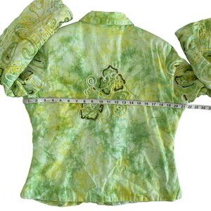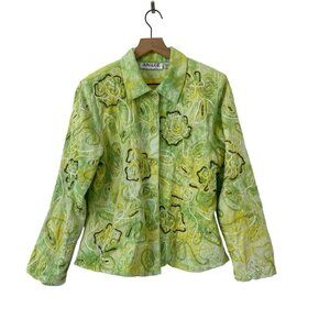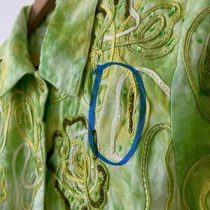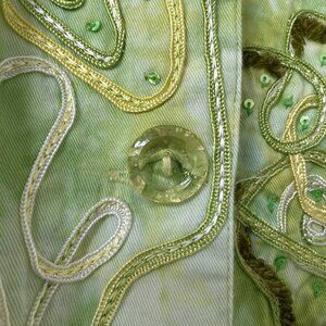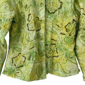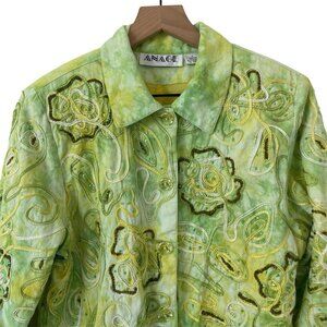 Anage Vintage Green Blazer Jacket Sequin Embellished Tie Dye Floral Button Up L