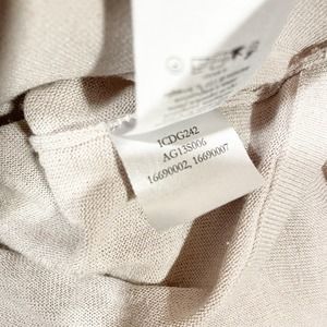 Anagram 2 Piece Belted Cardigan Sweater & Tank. Beautiful tie front cardigan sweater in a neutral beige light brown color. Comes with an attached matching tank top of the same color. Light and airy material. Scoop neck. Long sleeves. Belted tie front.