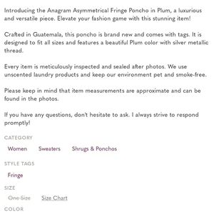 Anagram Asymmetrical Fringe Poncho Morad Plum One Size NEW
