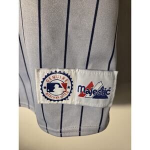 In excellent clean condition. The product is a vintage 90s Anaheim Angels jersey in men's size XL, officially licensed by MLB and made by Majestic. The jersey features the team's pinstripe design and is a great collectible item for fans of the Anaheim Angels. Made in the USA, this jersey is a unique piece of baseball memorabilia that showcases team spirit and nostalgia for the sport of baseball.