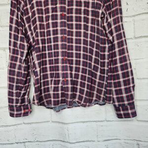 Analog Burton Blue Red Long Sleeve 100% Cotton Button Down Collared Shirt Plaid