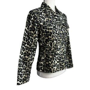 Analogy Jean Jacket NWT Animal Print Leopard Long Sleeves Trendy Women's Size Sm