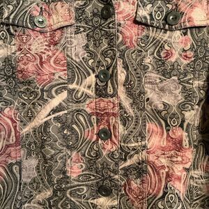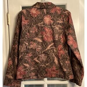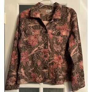Analogy Woman Short Button Up Long Sleeve Fitted Stretch Jacket Size L Floral