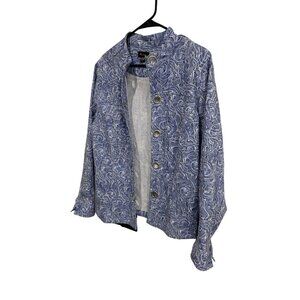 Analogy Womens Blue and White Printed Jacket with Grommet Details SZ Extra Large