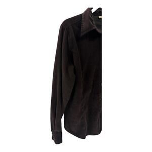 Analogy Women’s Brown Faux Suede Button-Up Shirt Size Large | Soft Feel Blouse