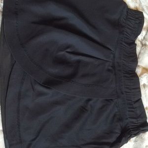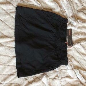 Anama black skirt with pockets. The underneath layer is a silky material. Elastic waist. Overlapping laying in the front.