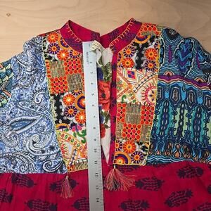 Anandas Boho Patchwork Tunic top Bell Sleeve Tassel Dress Women's Size XXL