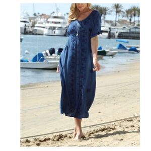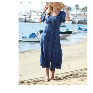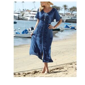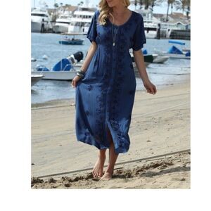 Ananda's Collection Blue Embroidered Button-Up Midi Dress - Women Size M # Z795