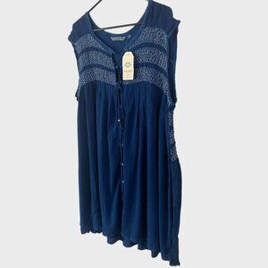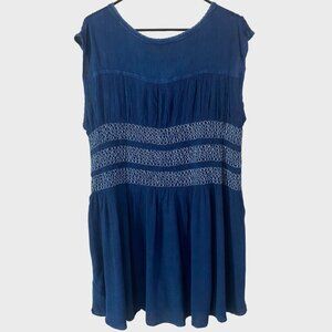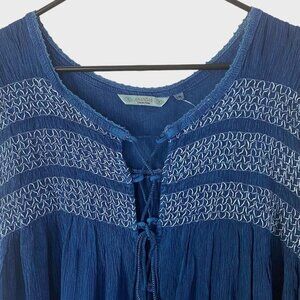 Anandas Collection Smocked Sleeveless Button-Up Tunic Top Denim Blue Boho New