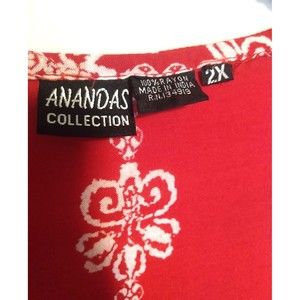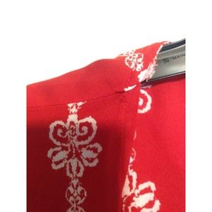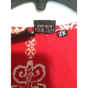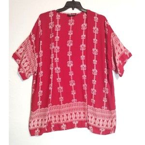 Anandas Collection Women's Boho Red White Rayon Floral Open Front Blouse 2X FLAW