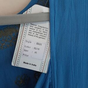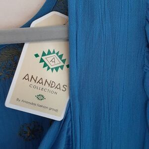 Anandas Collection Blue embroidery Peasant Tunic Mini Dress Bohemian NWT