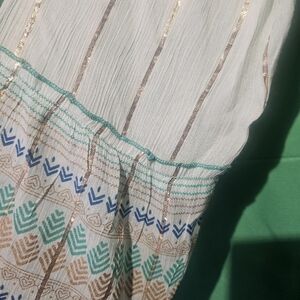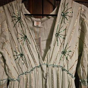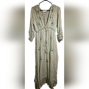 Ananta NWT Designer Dress Green Pleated Maxi Sundress with Bishop Sleeves L/XL