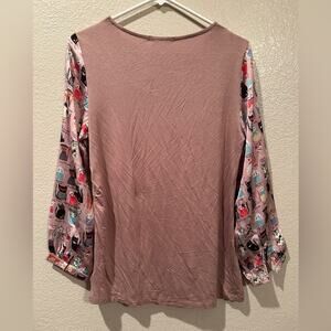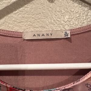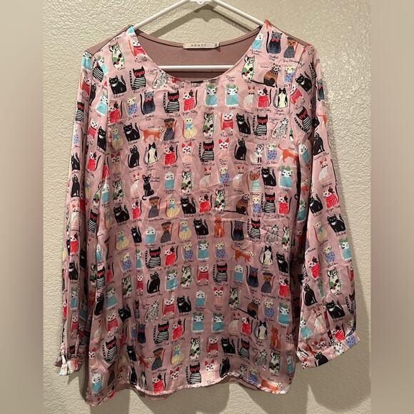 Anany Pink Cat satin Sheen Top with button 3/4 Sleeves Sz S