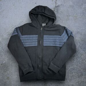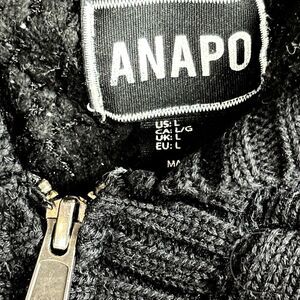 Anapo Women’s Full Zip Sherpa Lined Knitted Hooded Jacket Large Black & Blue